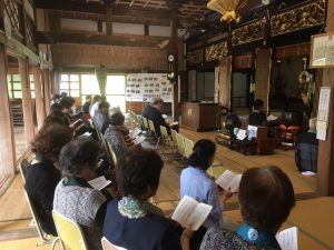 台風一過の秋晴れの中、法要後、ご法話、事前指示書の書き方を説明をいたしました。