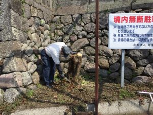 塗装の影響、樹齢もあり、昨年より開花が思わしくなかった藤の手入れをご門徒さんがしてくださりました。