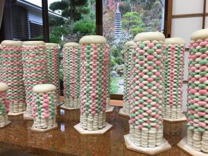 また光徳寺の御華束つきは白餅に後から色を付けるのではなく、白餅と色餅を組み合わせていく方法で組んで行きます。