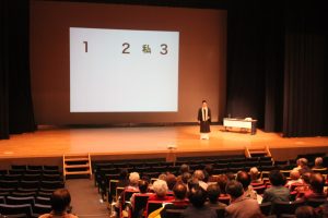 本堂とは違いホールでのお話に若干違和感がありましたが、映像などを用い、