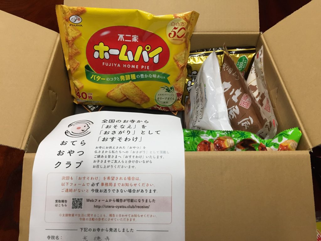 光徳寺は先月よりおてらおやつクラブ(https://otera-oyatsu.club)へ登録しております。