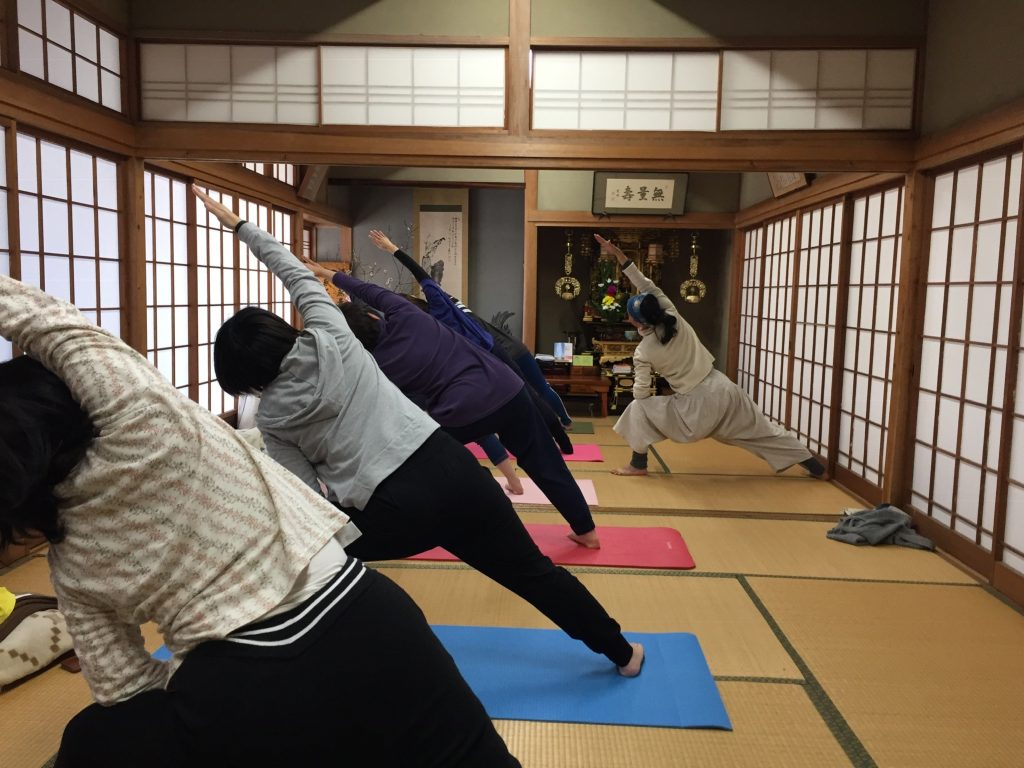 光徳寺では光徳寺が持つ宗教的空間の中でヨガをしています。