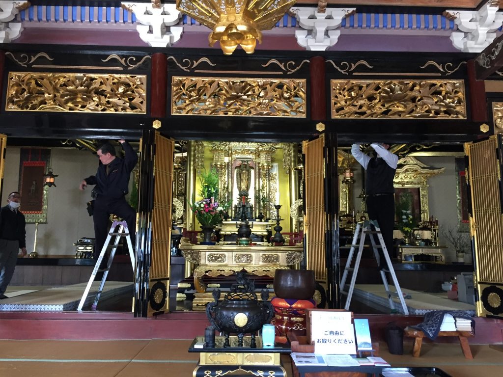 この度の新調の際にご本尊の位置やお宮殿(くうでん:ご本尊を安置する仏殿)が地震の影響などによりズレていることもわかりました。古い本堂ですが、可能な範囲で修正をすることにしています。