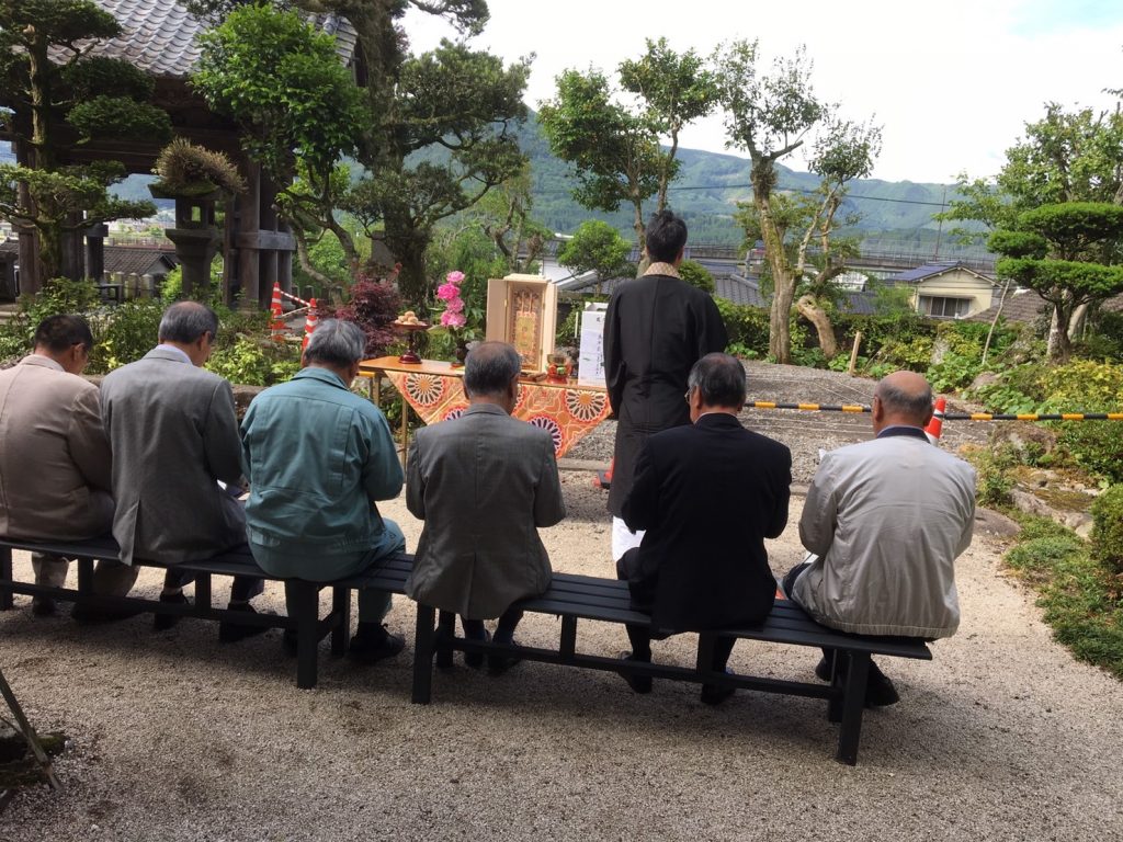 雨天が続いたことでしたが、5月21日本日は晴天を迎え、無事に鐘楼堂建設に向けての起工式を厳修いたしました。