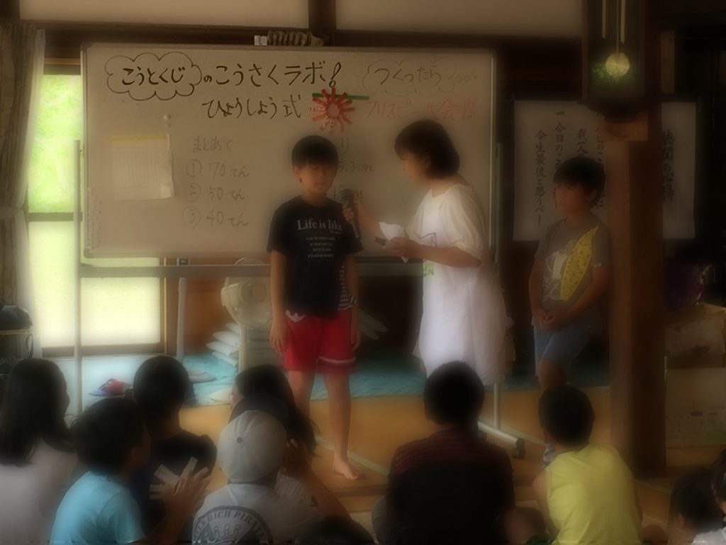 工作は「こうさくラボたからばこ」のトーコさんによる牛乳パックで作るフリスビー大会。