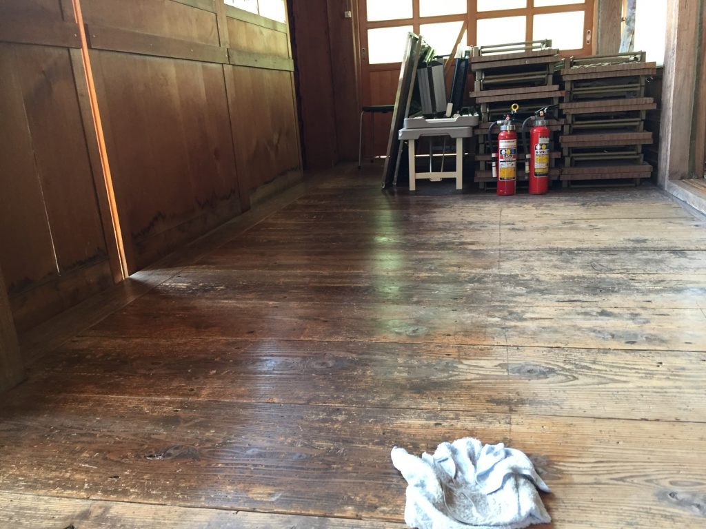 みんなが帰った後は、力いっぱい拭き掃除をすることも住職の務め。