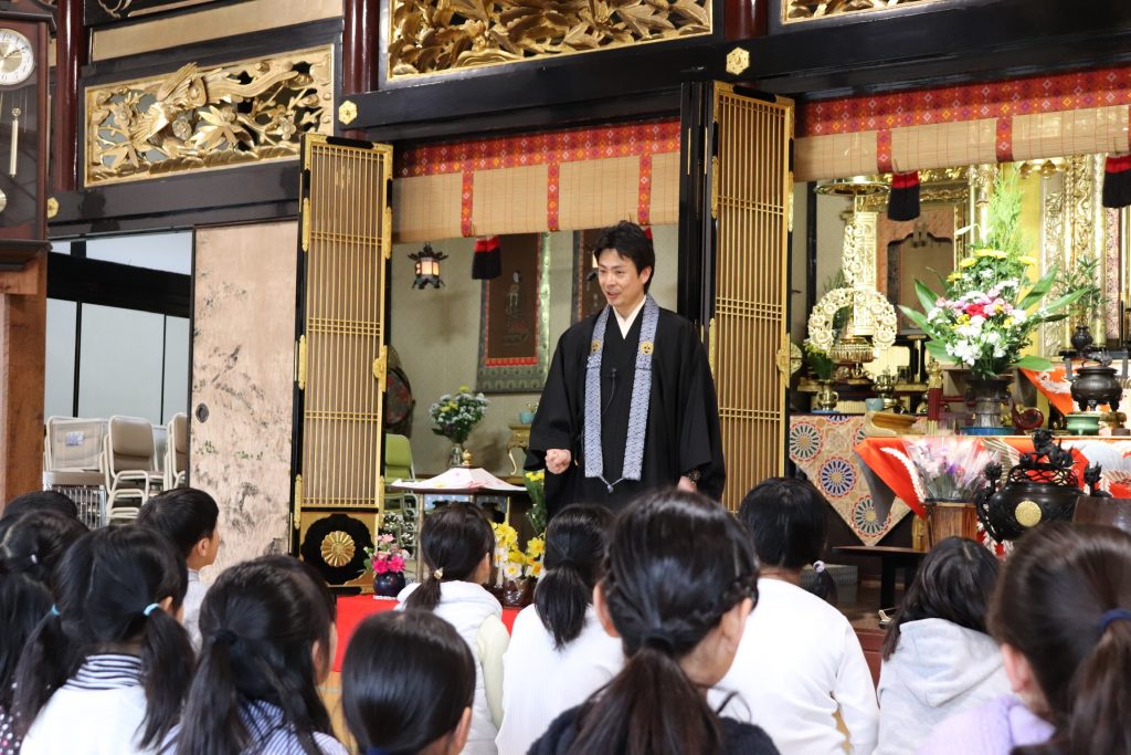 すこし肌寒さの感じる日でありましたが、今年も初参式〜花まつり〜と称して子どもお参りのご縁を頂きました。