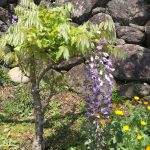 光徳寺の駐車場の藤が枯れ、昨年新しく植えた藤。