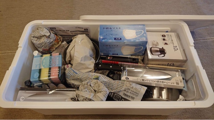 また、これからの生活がいつでも始められるようにとフライパンや包丁、まな板などなど24品目4人前分が入った『生活用品セット』を私も加入しています。