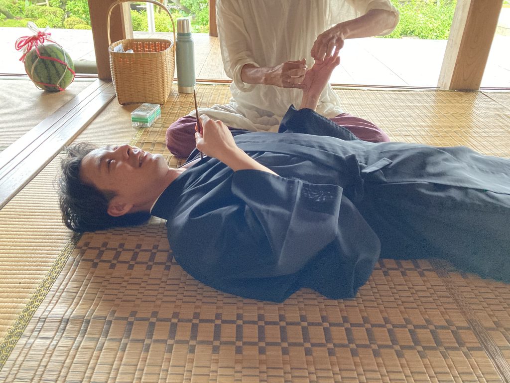7月12日 水害被害も出ている中ですがこんな時だからこそ、体も心も見つめて整えていきたいと、早朝よが開催しました。