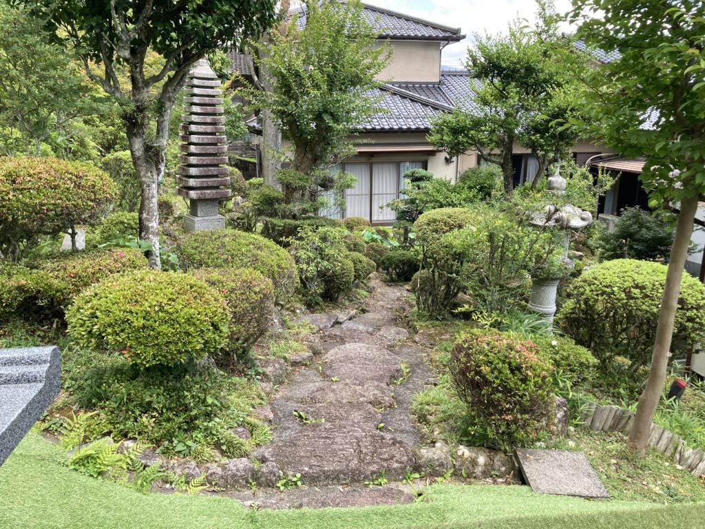 合葬墓から見える裏庭。少しづつ剪定が間に合って来ました。