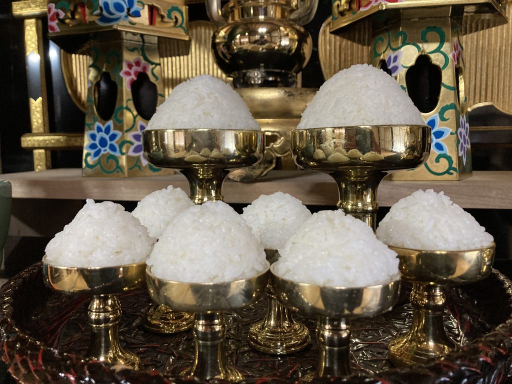 ご法座の前には「御院家(ごいんげ)さん、お仏飯ができましたよ。」とご門徒さんがお供えのお仏飯を準備してくださります。みなさまとともにお聞かせいただく法要の始まりを再認識し、ありがたくあたたかくなる瞬間でもあります。今年も無事に迎えられたことを慶ばせていただきました。南無阿弥陀仏。