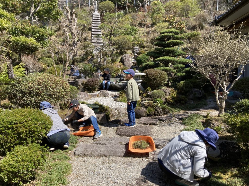春休み中の草むしりの会には子どもたちも参加してくれます。