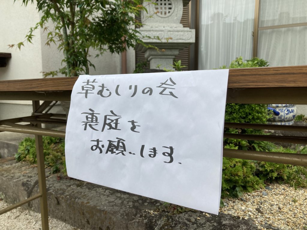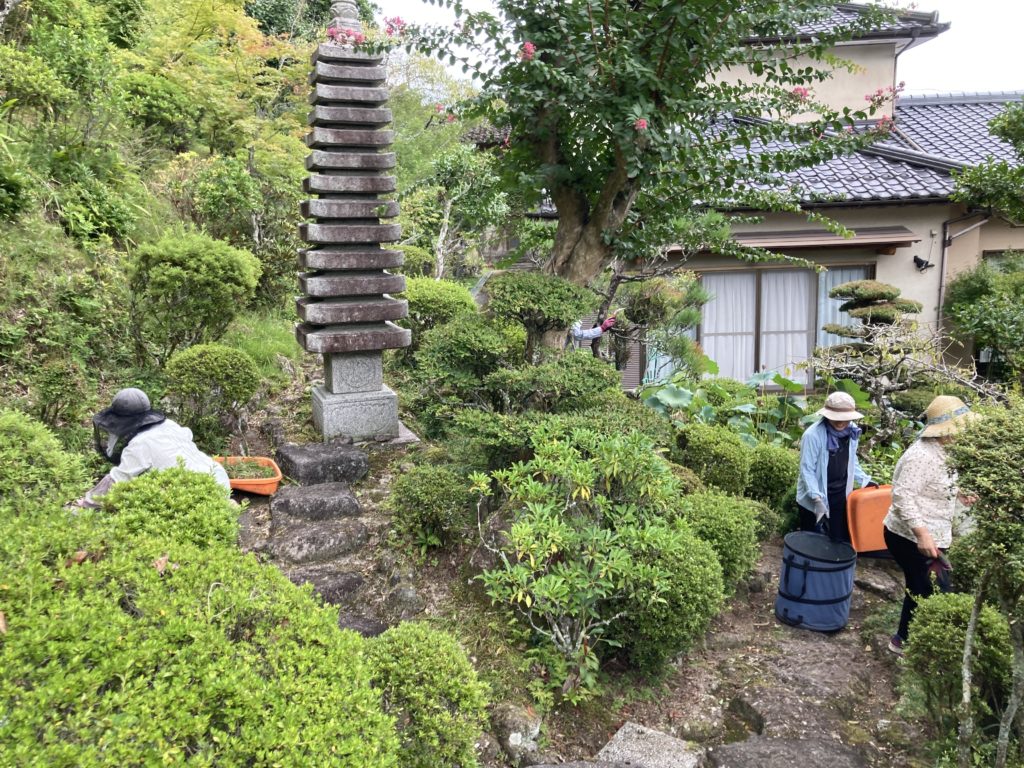 小雨止んだ早朝。一人、二人と草むしりにお越しになられました。