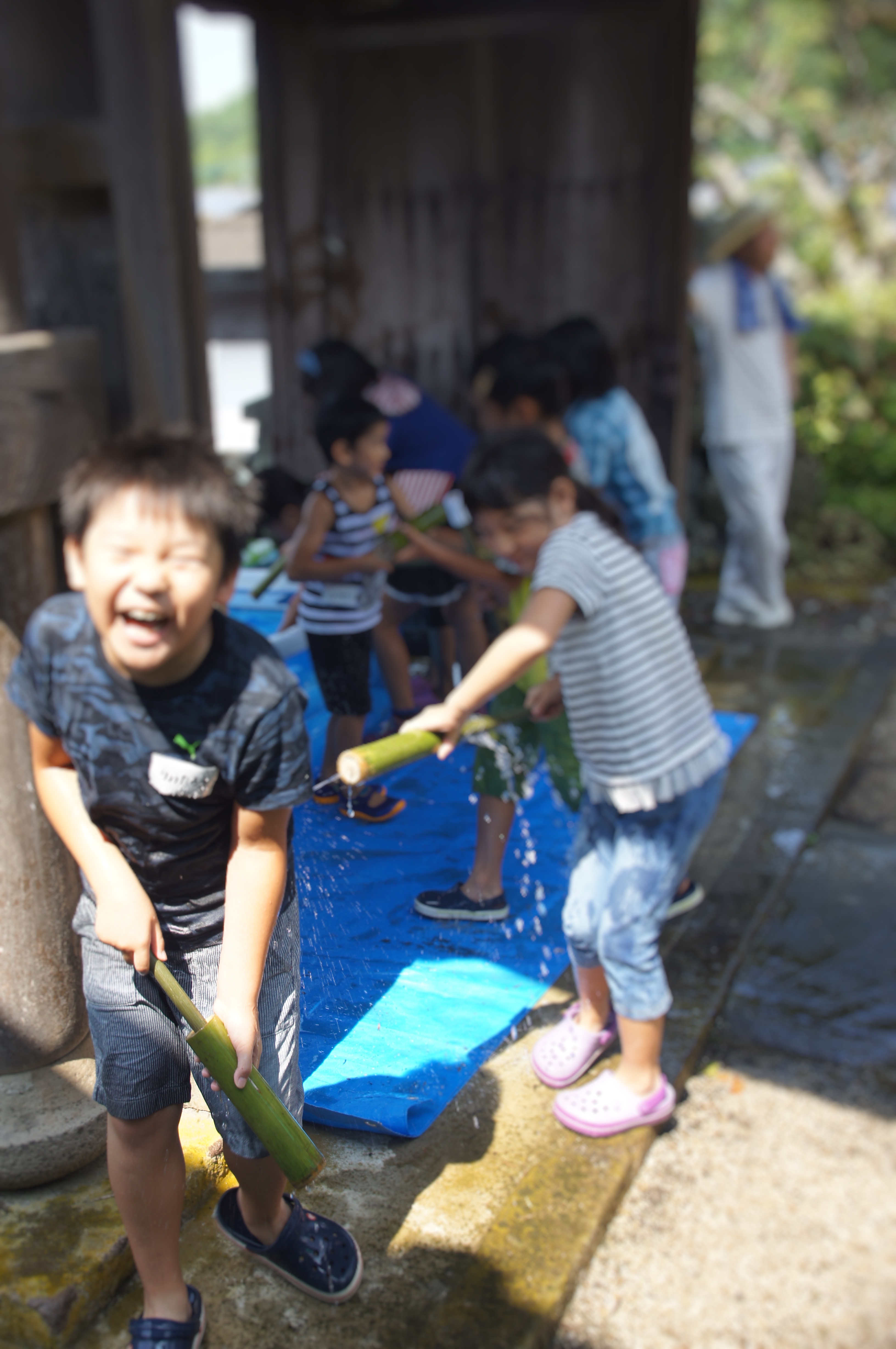 水鉄砲遊びでずぶ濡れになったり、お家ではつい怒られてしまう遊びもお寺では怒られないという経験、下級生との関わり等を通じていろんな成長の姿を見せてくれました。子どもたちの歓声が境内にいつまでも響きます♪