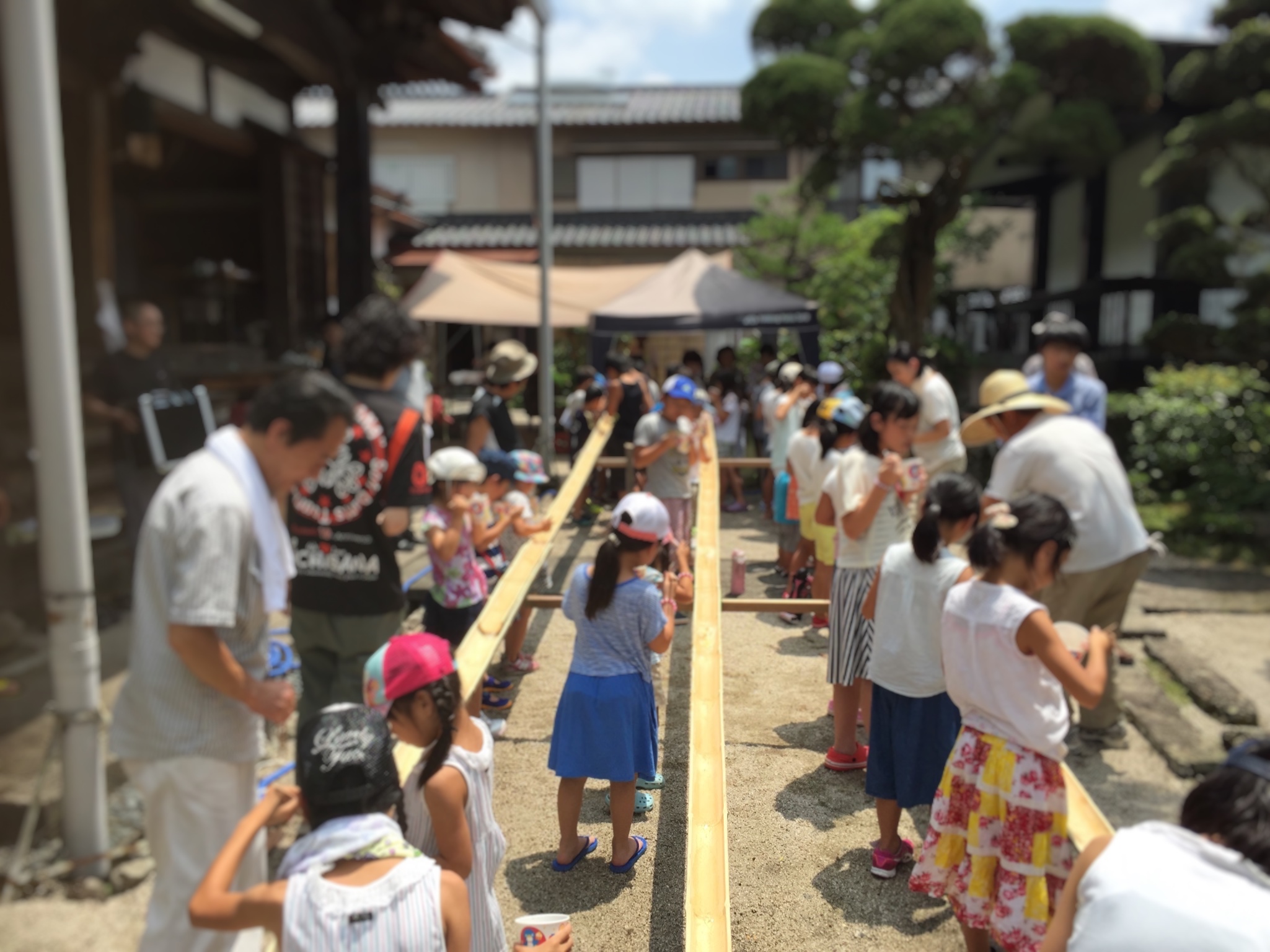 光徳寺夏休み子ども会を行いました。毎年光徳寺仏教壮年会が主催となり、流しそうめん、竹水鉄砲、スイカ割りを提供してくださります。